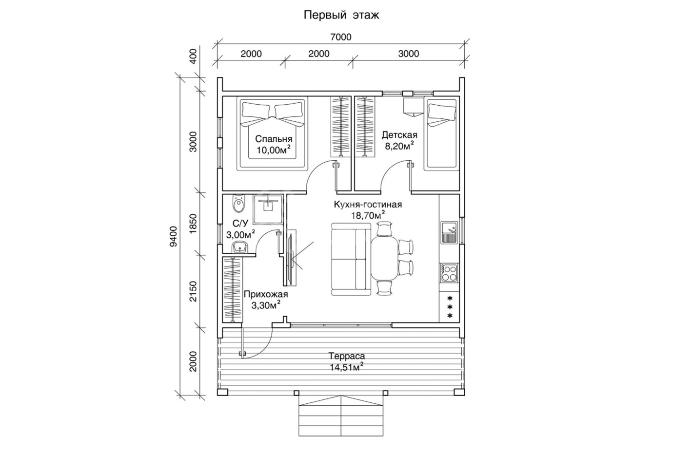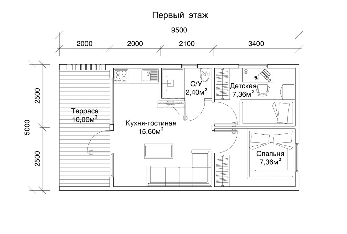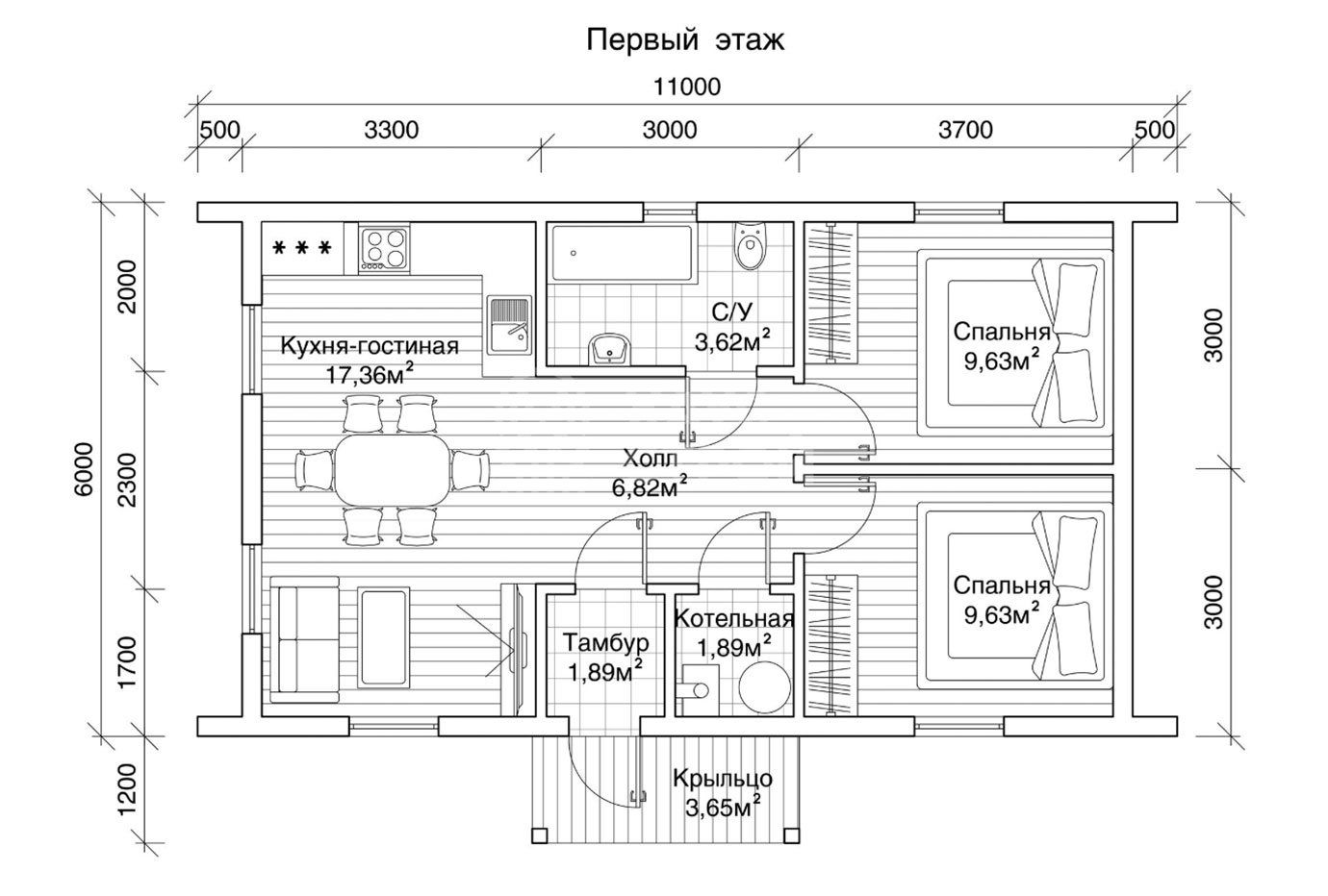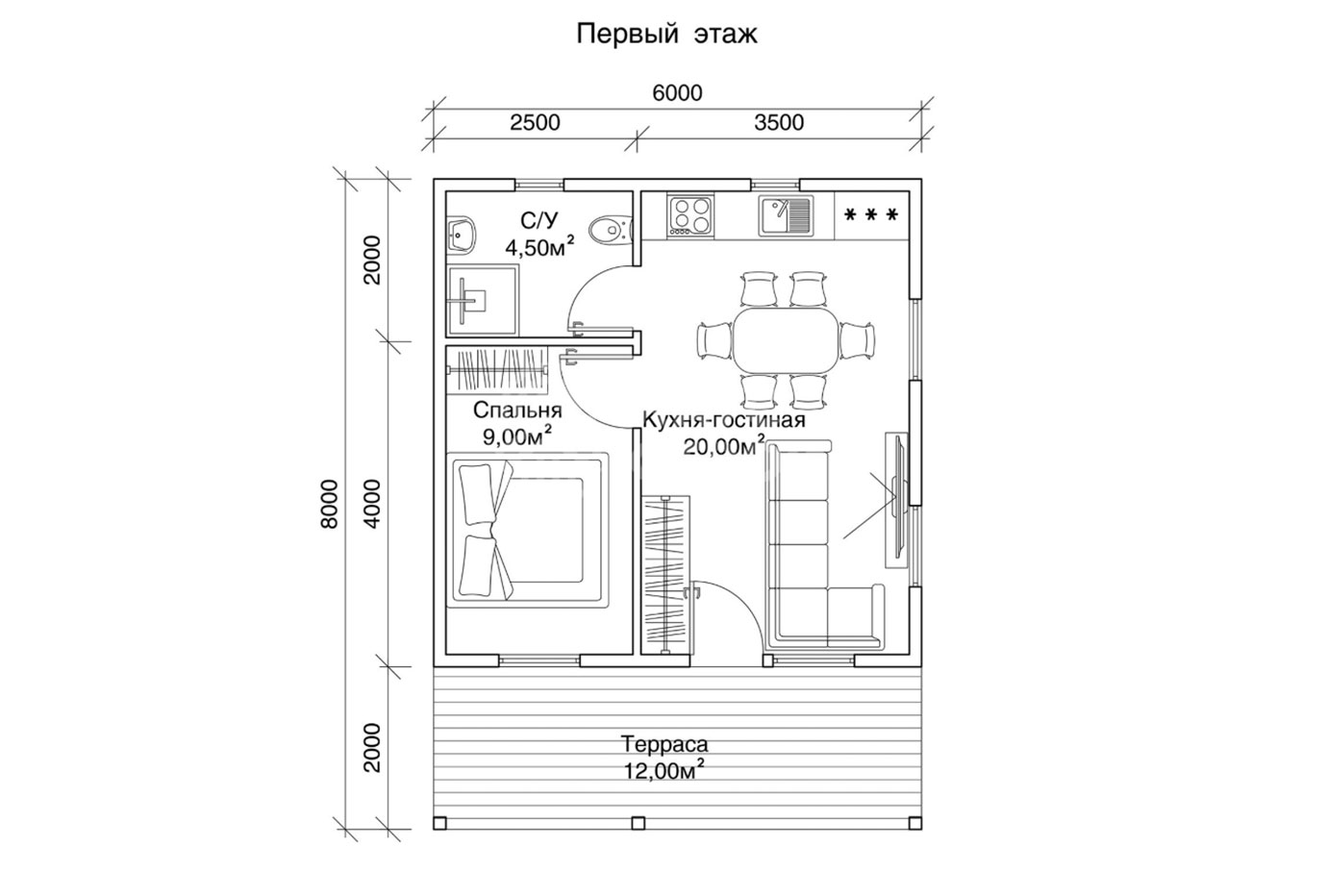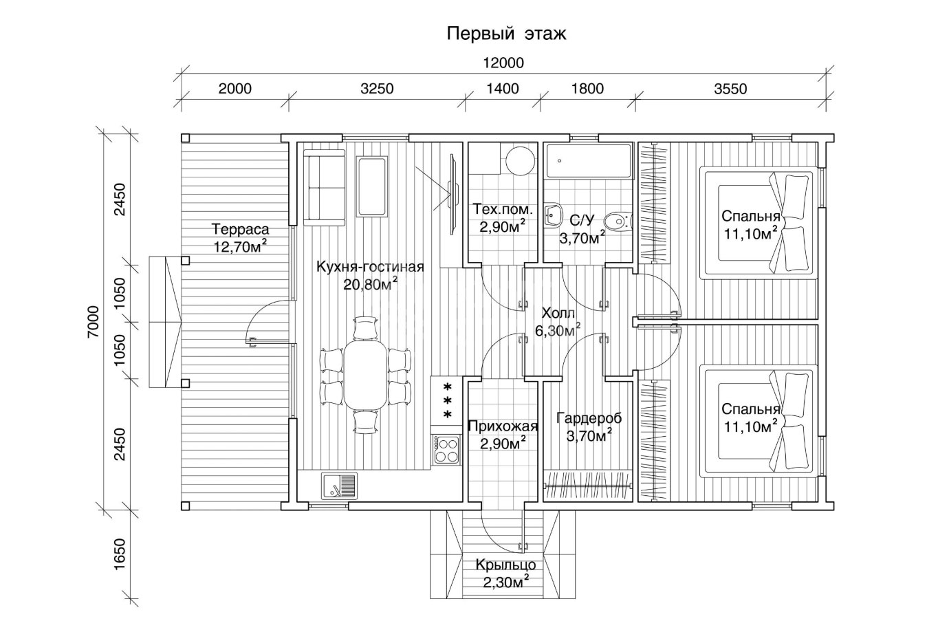 Возможны различные планировки дома в рамках прямоугольной концепции дома и двух скатной крыши.